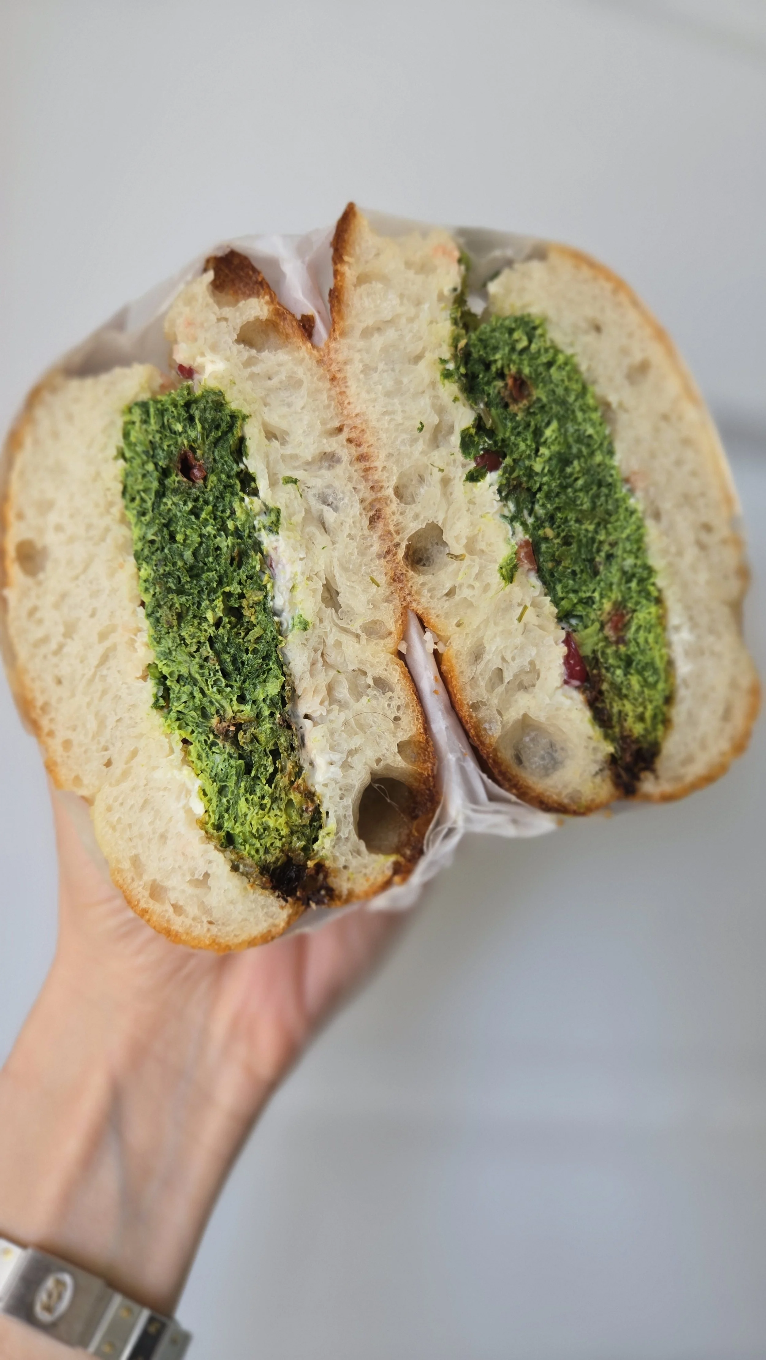 Our new sandwich is an herb-packed perfection: No.88, Kuku with whipped olive yogurt on fluffy focaccia.